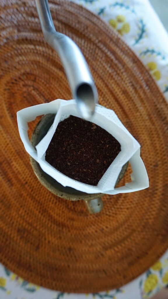 「花とコーヒー」では、季節の草花を使ったリースと、丁寧に焙煎した珈琲豆を販売しています。どちらも、忙しい日々の中で深呼吸できるような、やさしい時間を届けたいという想いから生まれました。